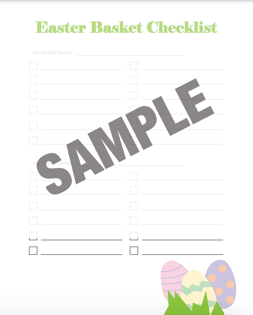 1 PDF file, 1 page: (1) Easter Basket checklist