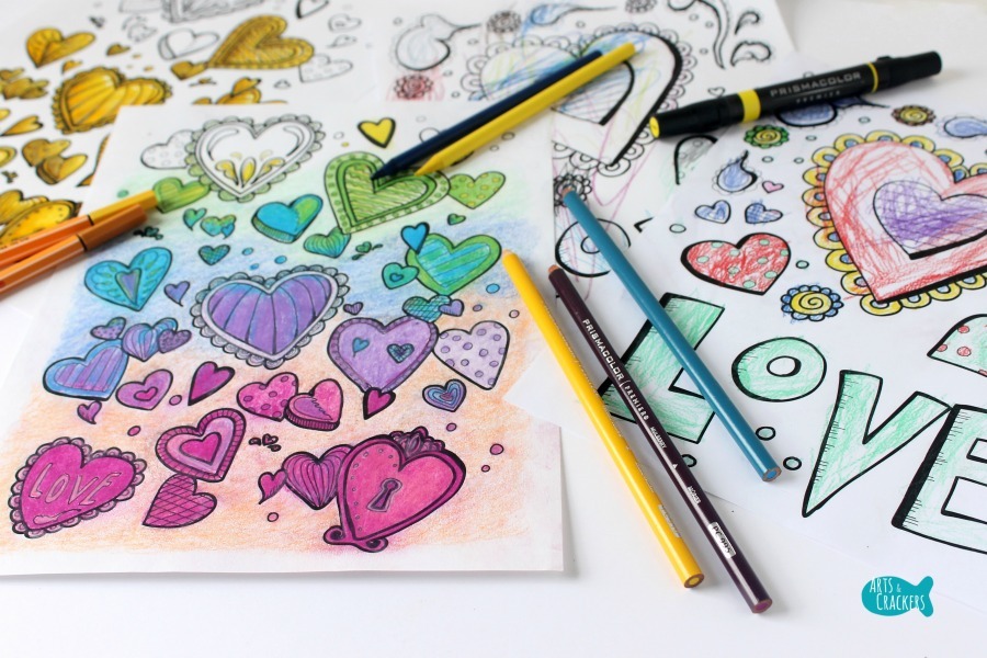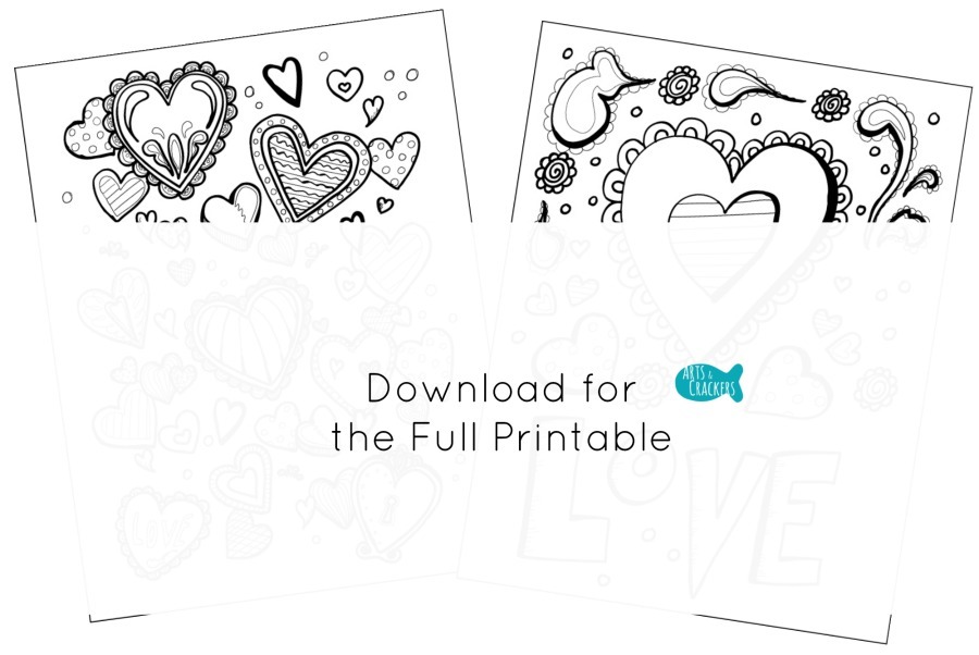 1 PDF file, 2 pages: (1) simple heart coloring page, (1) more complex heart coloring page