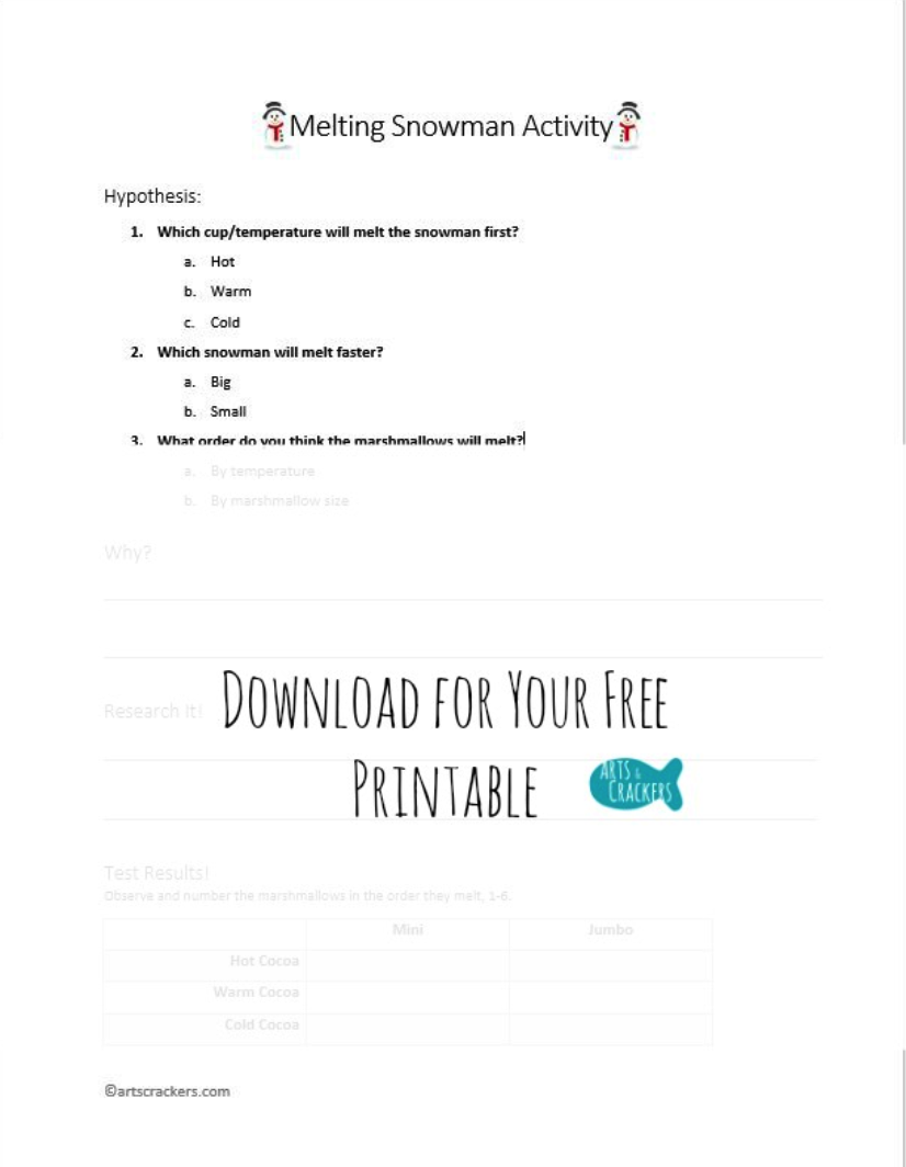 Melting Snowman Hot Chocolate Experiment Worksheet