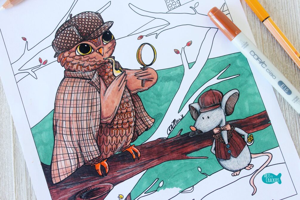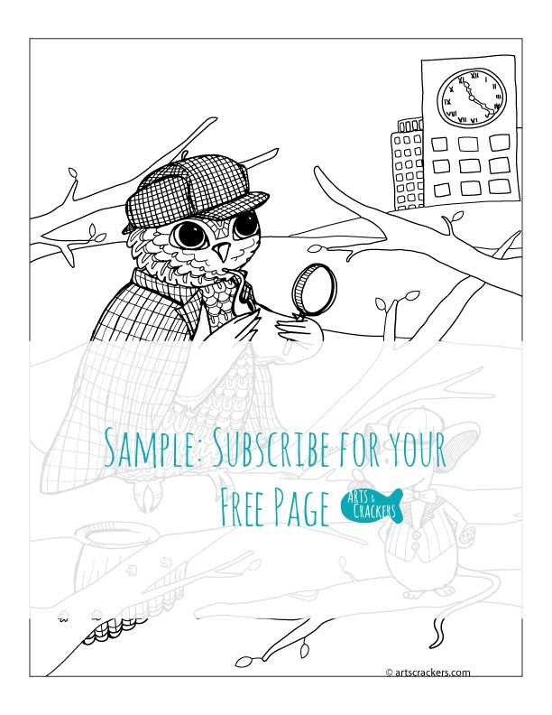 Detective Owl is on the job. Can they figure out where the missing cheese went to? Color this page and imagine your own storyline!