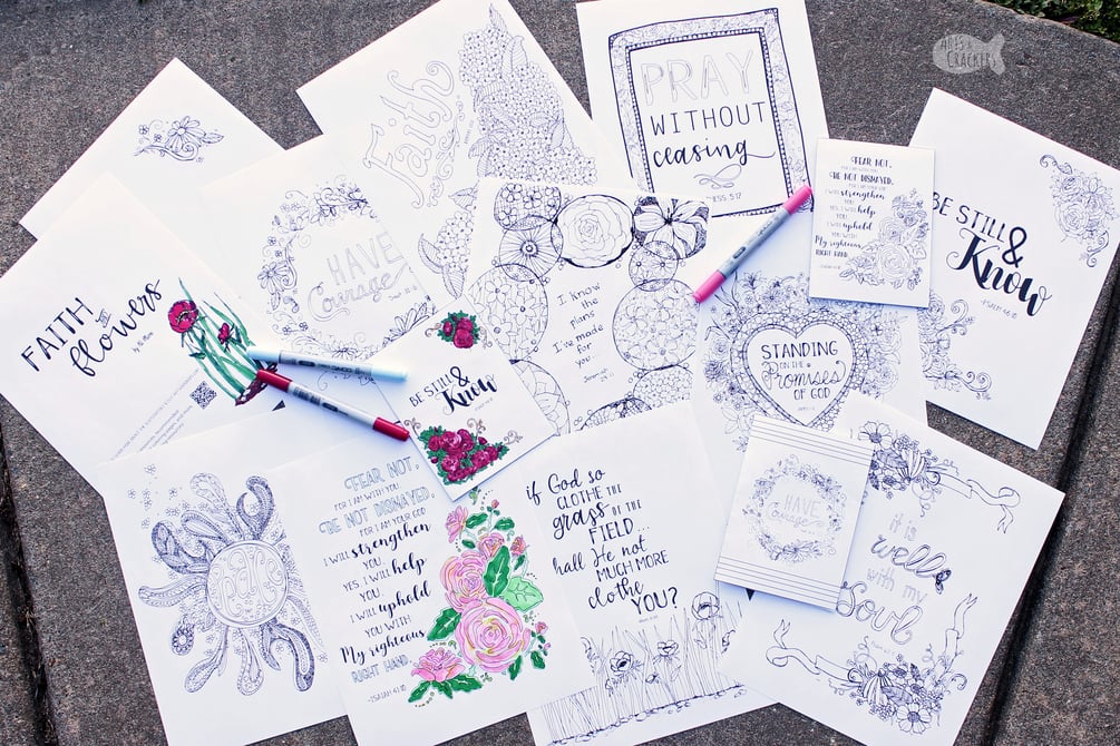 Grow your faith, find peace, strengthen your courage with these beautiful hand-illustrated floral verse coloring pages.